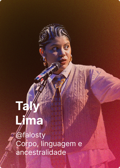 O palco do TXB’26 dá espaço para nomes regionais e nacionais compartilharem com o mundo ideias que podem se tornar matéria-prima para criação, encontro e cura. Serão 14 talks com duração média de 15 minutos que ocorrerão em dois blocos durante o dia do evento.